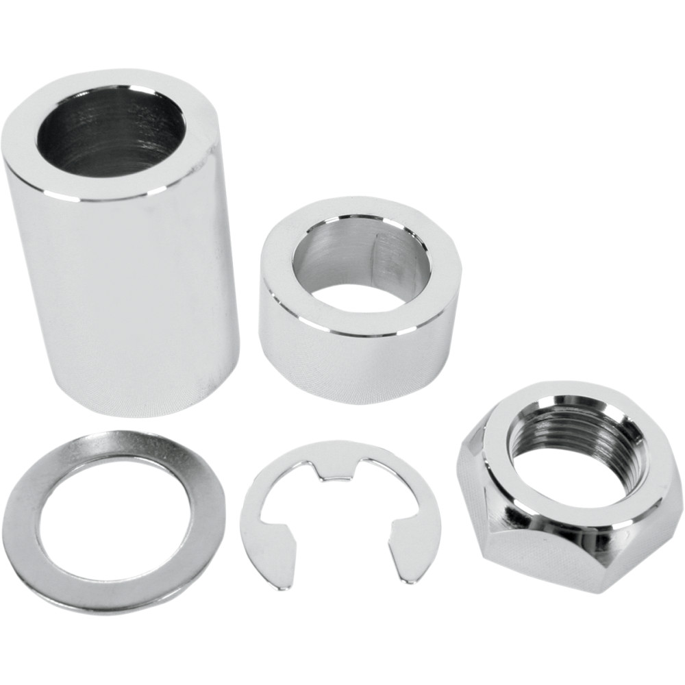 Kits include polished/chrome-plated finish spacers, nuts and machined washers